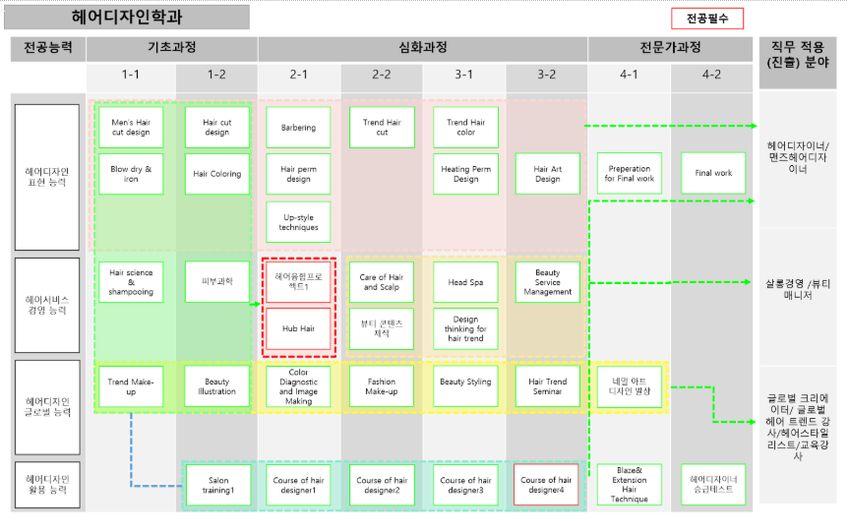 미용예술대학 학과 교과목 이수체계도는 교과목 이수체계도 페이지에서 확인하실 수 있습니다.